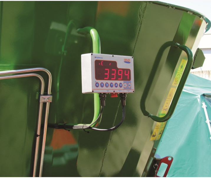 - Електронні ваги з дисплеєм LCD для контролю часу роботи шнека і зважування кормової суміші
