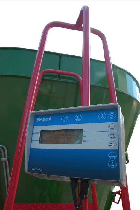 - Електронні ваги з дисплеєм LCD для контролю часу роботи шнека і зважування кормової суміші