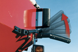 Основні функції розкидача управляються за допомогою гідравліки з кабіни трактора (є 3 окремих гідравлічних лінії + лінія опційного гідроприводу вентилятора). Наприклад, штанги складені, розкладені і заблоковані гідрозамком (через пріоритетний клапан), що дозволяє швидко та легко переводити машину в робоче чи транспортне положення. На додачу, колесо приводу дозатора вмикається гідроприводом і постачається з запірним клапаном для блокування колеса в робочому положенні. Зрештою, можлива експлуатація з вимкненим одним крилом покращує універсальність використання ммашини.