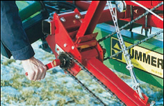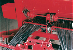 За спеціальним замовленням поставляється комплект перемикання передач. (Показано) Скоби фіксують положення шлангів на задній частині бункера.