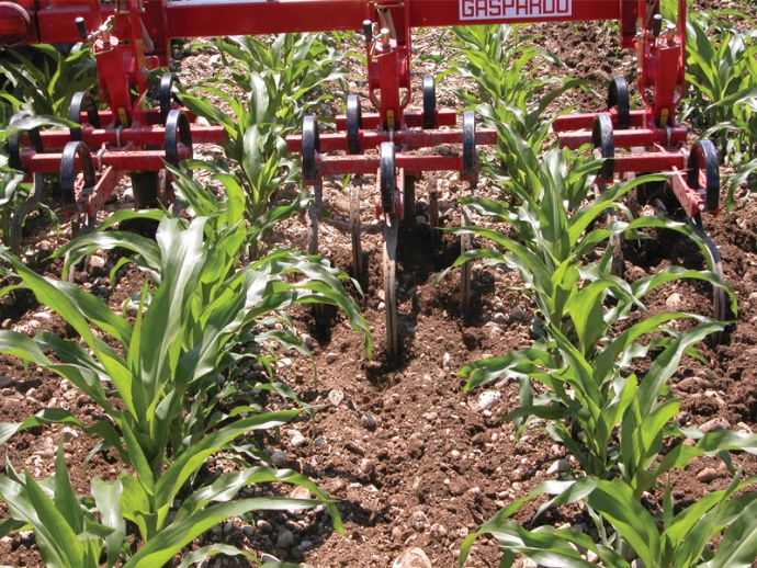Пропашной культиватор с гидравлически складывающейся рамой для междурядной обработки технических культур (кукуруза, подсолнечник, сахарная свекла, соя). Габаритная ширина при транспортировке составляет 2,50 м.