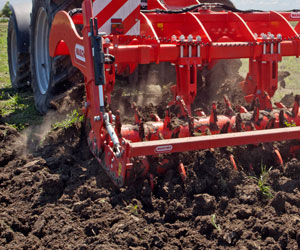 Идеально выровнен грунт без забивания растительными остатками: большое расстояние между рядами стоек (100 см) и высокий клиренс помогают избежать остатков и комков, что способствует повышению эффективности работы.