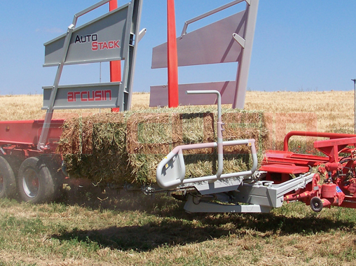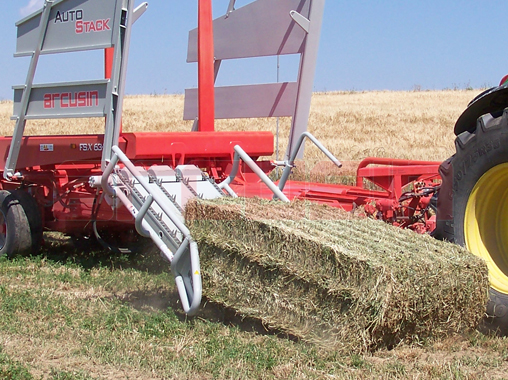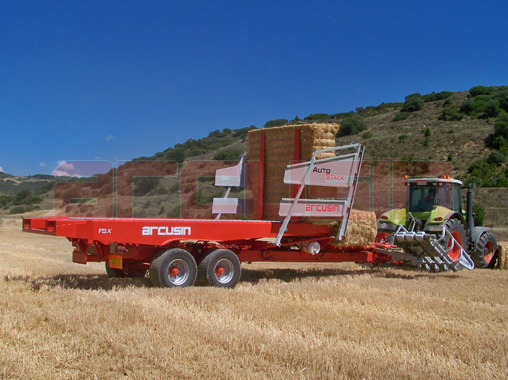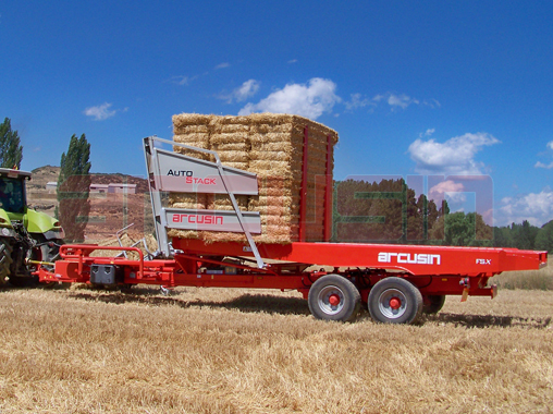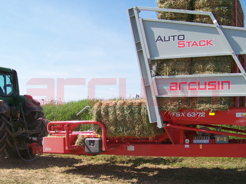 Призначення: Причіп-автонавантажувач для тюків ARCUSIN Auto Stack FSX призначений для підбирання тюків сіна/соломи на полі, трансортування та складування тюків в штабелі на місц ізберігання.