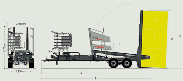 Висувна перекидна платформа. Частина причепа, де складаються всі тюки, розміщена на перекидній платформі. Після її наповнення відбувається розвантаження за рахунок перекидання платформи до вертикального положення. Є можливість збільшити довжину перекидної платформи, збільшивши таким чином обсяг вантажу. Ідеальна перевантаження тюків на перекидну платформу, забезпечує ущільнення вантажу.