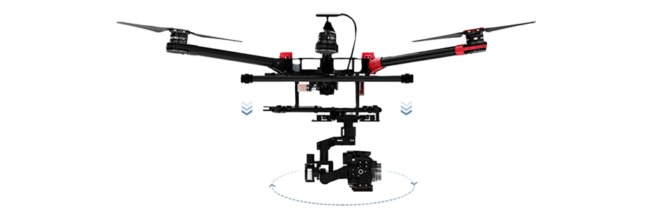 Складуване шасі спільно з особливим кріпленням підвісу забезпечують досить широкий діапазон кутів зйомки.Елементи кріплення для підвісу відокремлені від основної рами за допомогою демпферів особливої конструкції, що істотно знижує вібрацію і дозволяє отримувати більш різке зображення.
