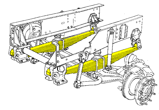 - Передні параболічні або напівеліптичні ресори 9 000 кг.