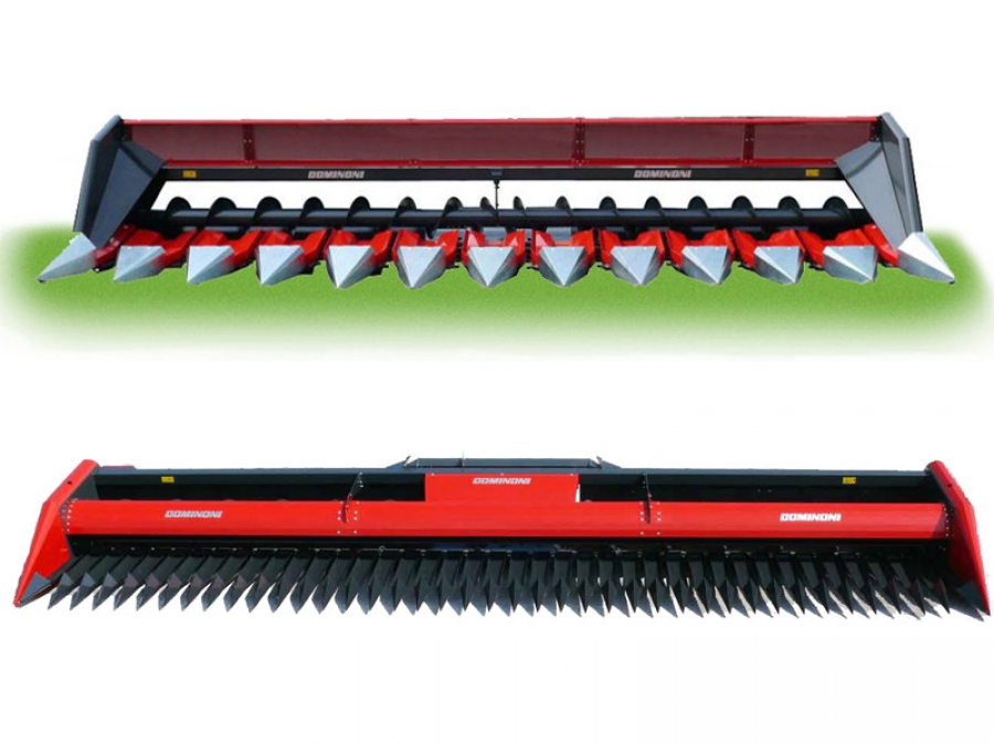 Завдяки використанню високоякісних матеріалів і компонентів, а також застосуванню простих, але функціонально конструктивних рішень, жатки Dominoni являють собою ефективне обладнання для прибирання соняшника.